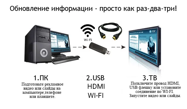 Рекламный телевизор представляет собой современную технологию отображения, визуализации информации и передачи данных.